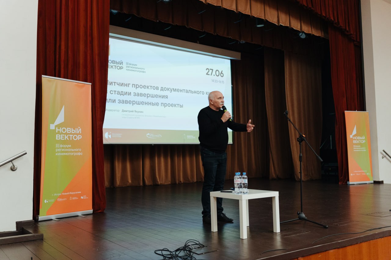 Модератором питчинга выступил Дмитрий Якунин, член Совета Фонда поддержки регионального кинематографа, генеральный продюсер форума «Новый вектор».